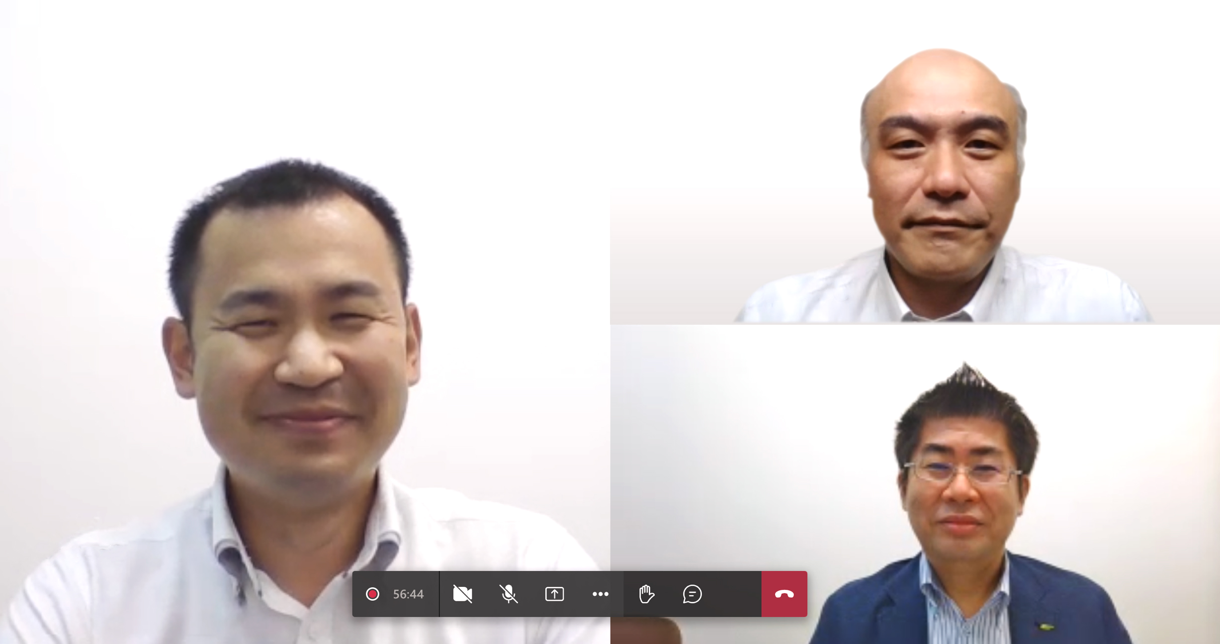 【画像右下】株式会社ハチバン 執行役員らーめん事業部長 谷内 敏隆(やち としたか)様【画像左】株式会社ハチバン らーめん事業部FC運営 担当部長 森 皓介(もり こうすけ)様【画像右上】株式会社アモーレながすぎ 営業部統括マネージャー前田 昭仁様(まえだ あきひと)様(コロナ禍によりWEBインタビューが行われた)