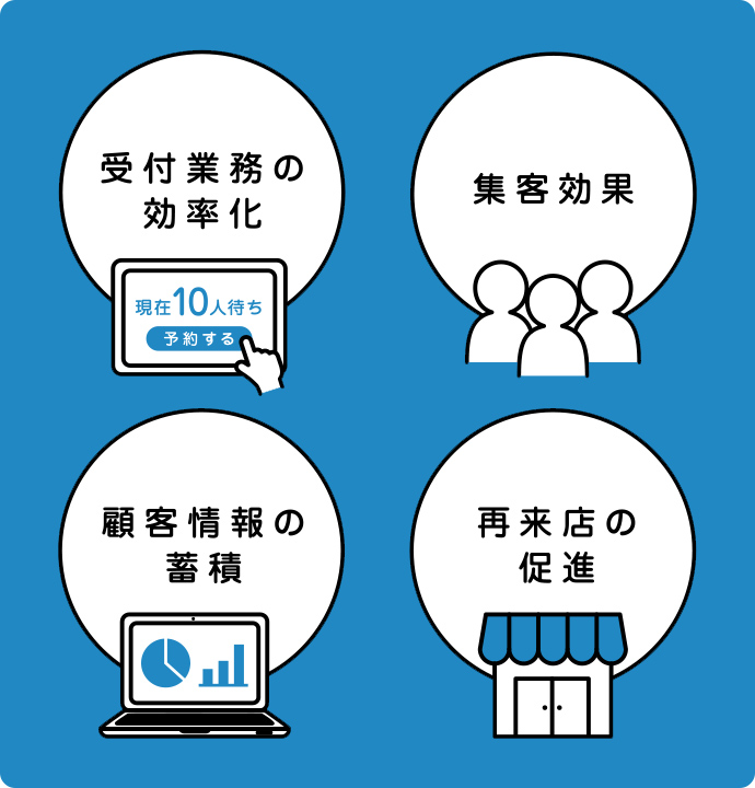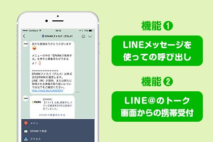 EPARKは、飲食店、美容室、病院、携帯ショップ、自治体など世界約10万施設以上の人気施設で利用されている順番待ち&予約受付システムです。店頭の発券機に加え、WEB上で順番待ちや特許取得の日時指定予約を受け付けることで顧客満足度の向上やリピート促進に貢献します。また、受付業務からスタッフの皆さまを解放します。順番待ち市場における実績、信頼、安心を兼ね備えた国内トップシェアブランドです。 知的財産権の保護にも積極的に取り組み、順番待ちシステム特許保有数は世界有数。社会的信用を重要視する法人様、政府・自治体関連各施設などにおいても継続的に安心してご利用いただける環境整備を常に心がけております。また2020年からは農林水産省が主幹する政府系事業「Go To Eatキャンペーン」に順番待ちシステムとして国内で唯一採択され、多くの飲食店様でご利用頂いております。